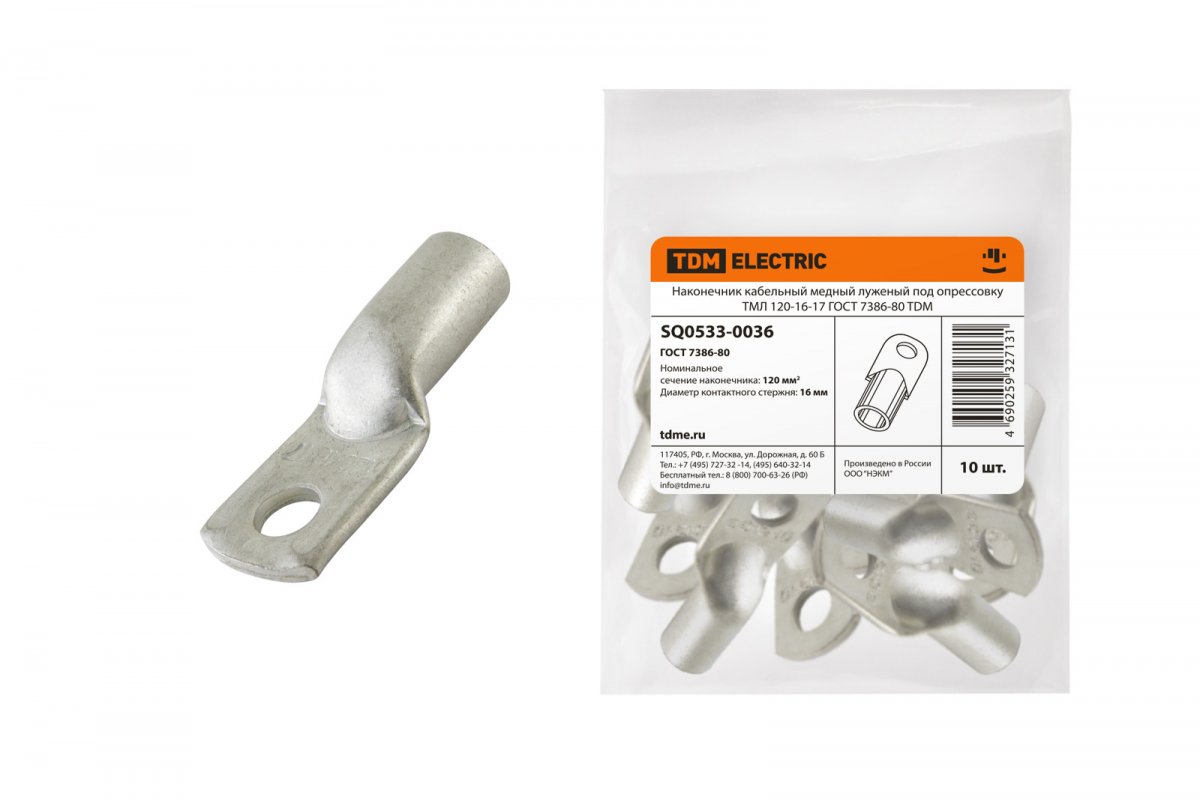 Наконечник кабельный медный под опрессовку луженый ТМЛ 120-16-17 TDM