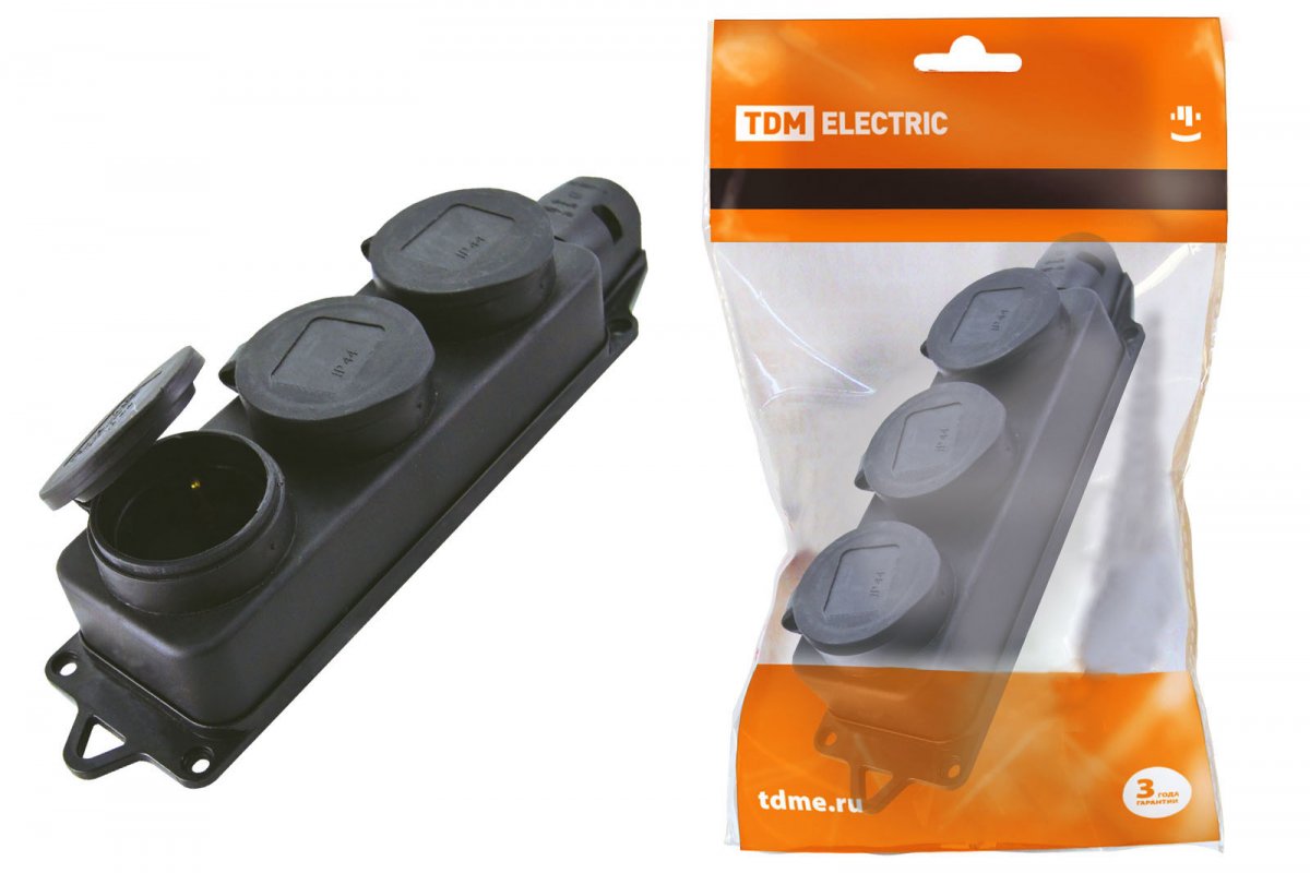 Розетка трехместная с заглушкой каучук 2Р+РЕ 16А 250В IP44 TDM