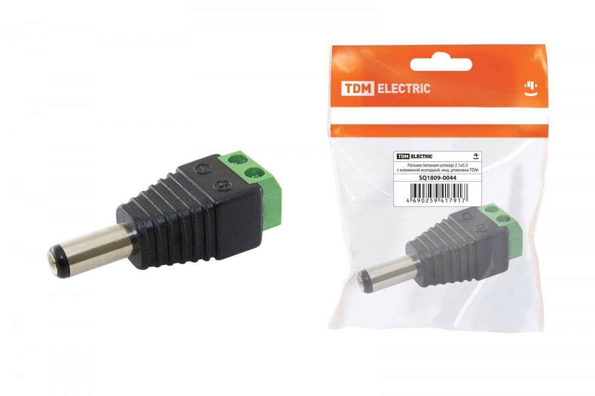 Разъём питания штекер 2.1х5.5 с клеммной колодкой, инд. упаковка TDM (ЕС)