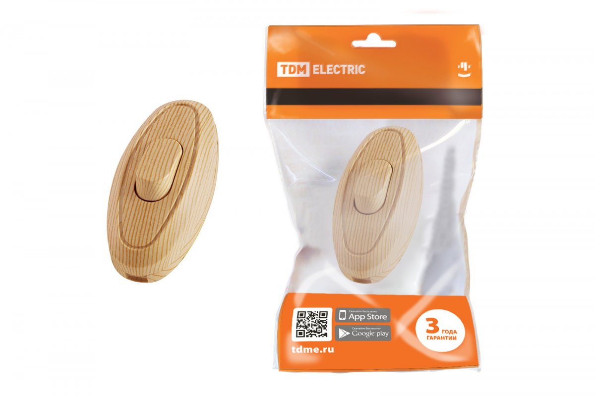 Выключатель на шнур 6А 250В ЭКО сосна TDM (ЕС)