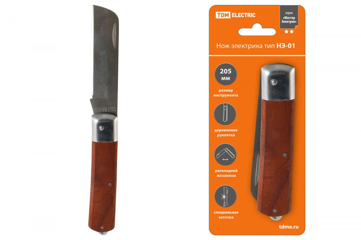 Нож электрика НЭ-01, 205 мм, деревянная рукоятка "МастерЭлектрик" TDM