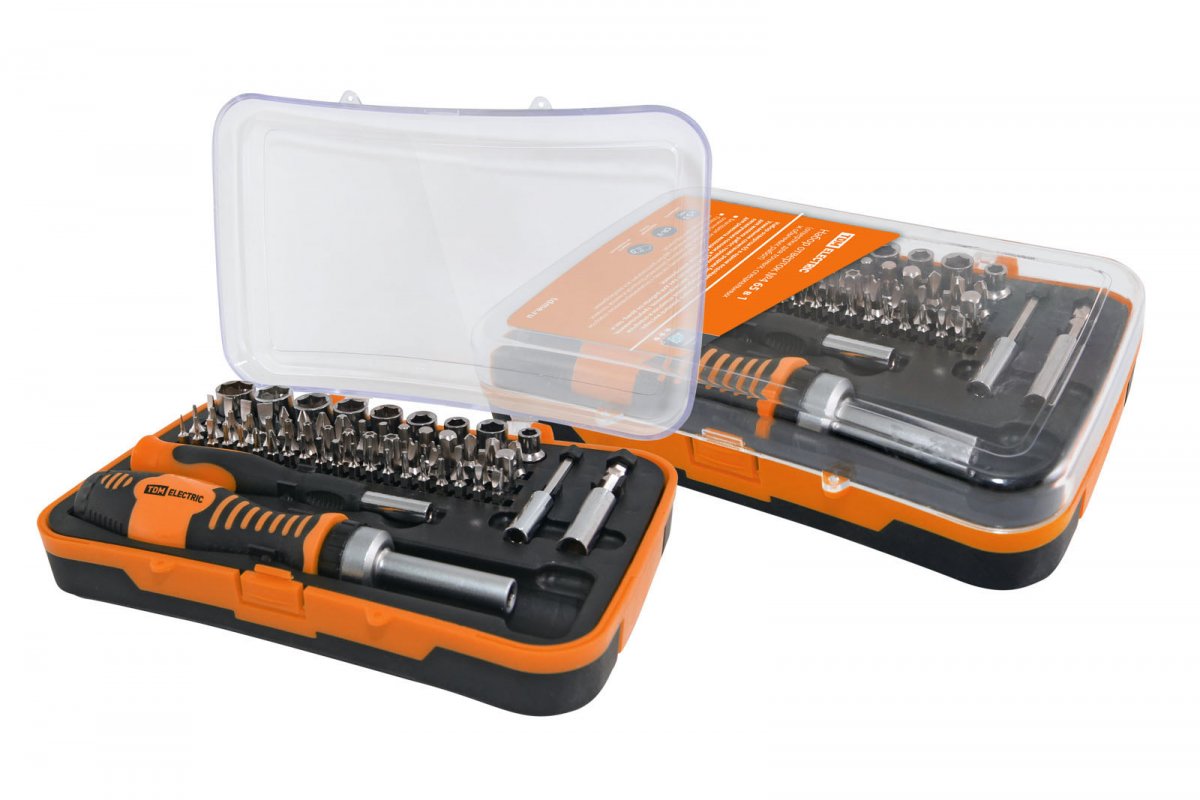 Набор, 2 отвертки: реверсивная, и тонкая, в к-те биты и головки, №4, 65 предметов "Алмаз" TDM