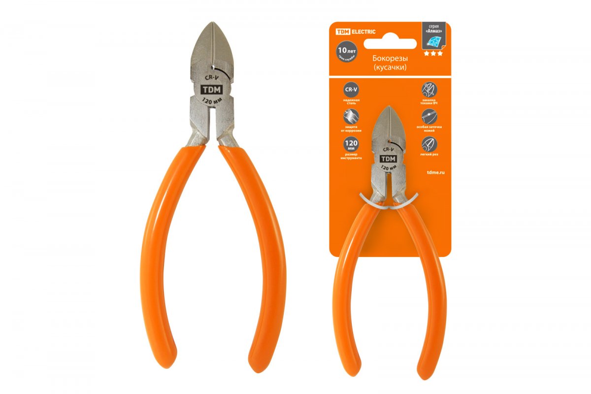 Бокорезы (кусачики), с однокомпонентными рукоятками, CR-V сталь, 120мм, серия "Алмаз" TDM