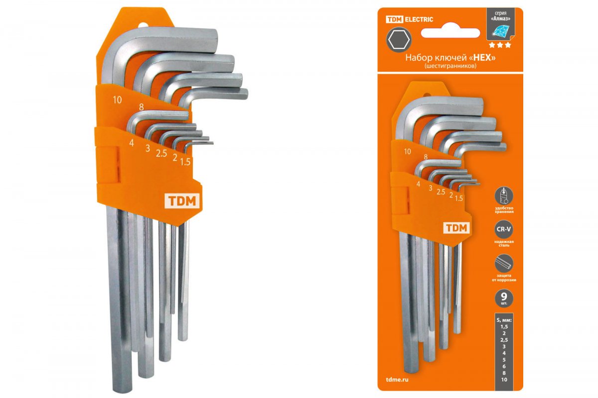Набор ключей "НЕХ" 9шт.: 1,5-10мм, длинные, (держатель в блистере), CR-V сталь "Алмаз" TDM