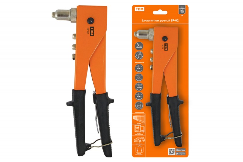 Заклепочник ручной ЗР-02, 2.4, 3.2, 4.0, 4.8 мм, "Гранит" TDM (ЕС)