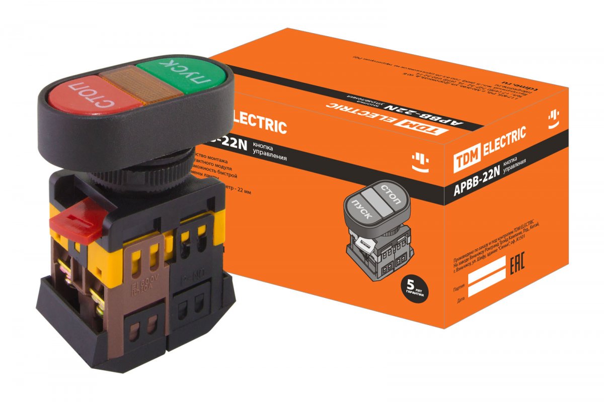 Кнопка APBB-22N "Пуск-Стоп" d22мм неон/230В 1з+1р TDM