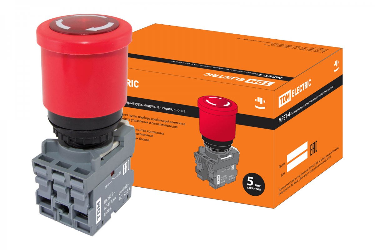 Кнопка грибовидная, возврат поворотом МРЕТ4-10R в сборе d40мм 1з+1р красная TDM