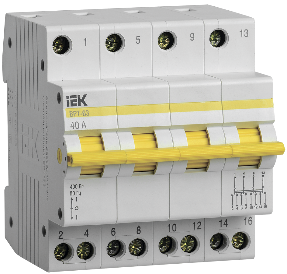 Выключатель-разъединитель трехпозиционный ВРТ-63 4P 40А IEK