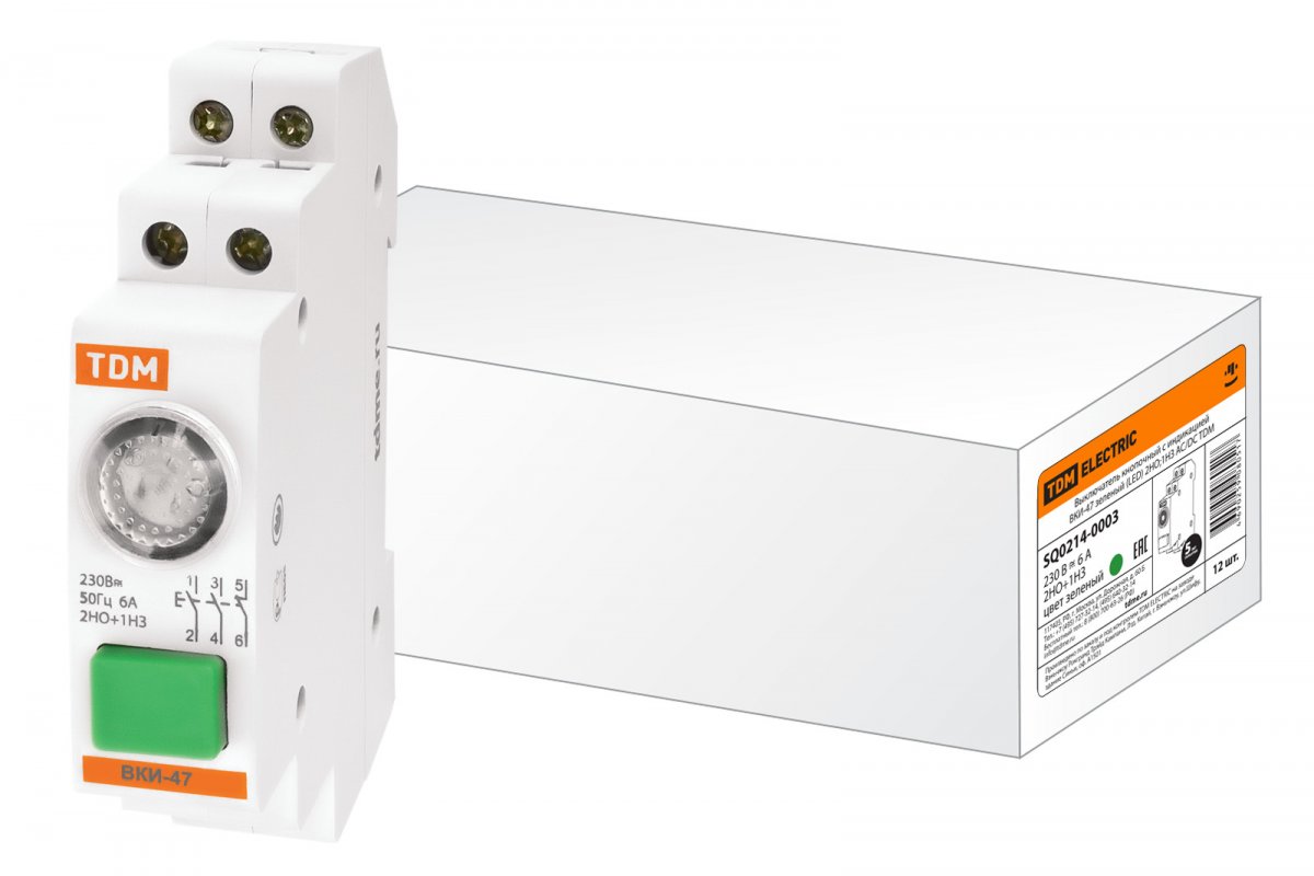 Выключатель кнопочный с индикацией ВКИ-47 зеленый (LЕD) 2НО 1НЗ AC/DC TDM