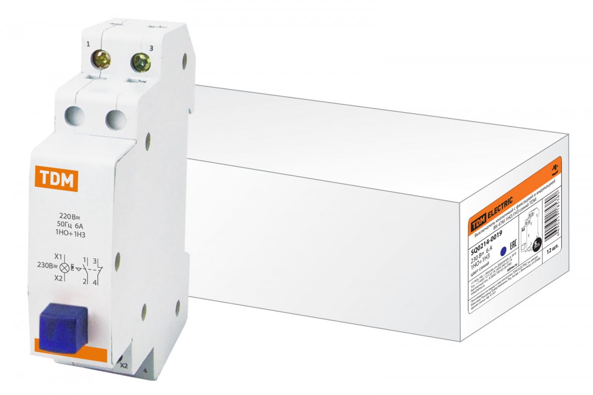 Выключатель кнопочный с фиксацией и индикацией ВК-47М 1НО 1НЗ синий TDM