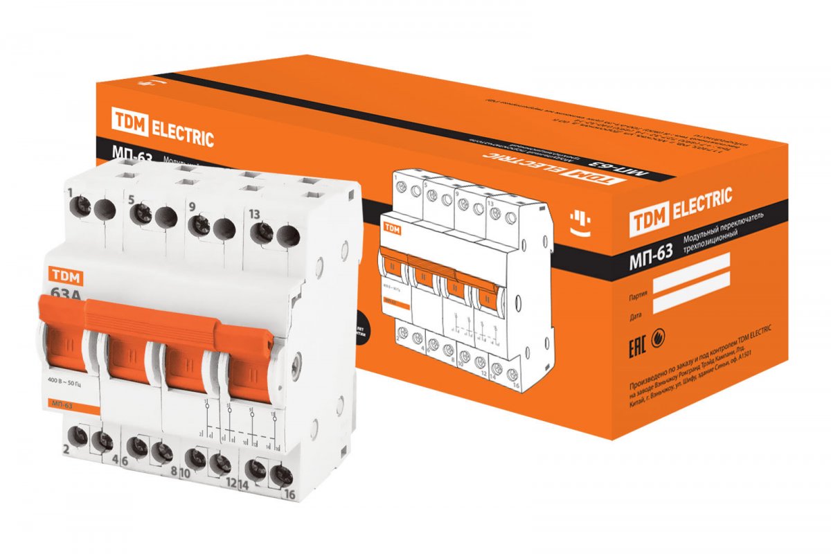 Модульный переключатель трехпозиционный МП-63 4P 63А TDM