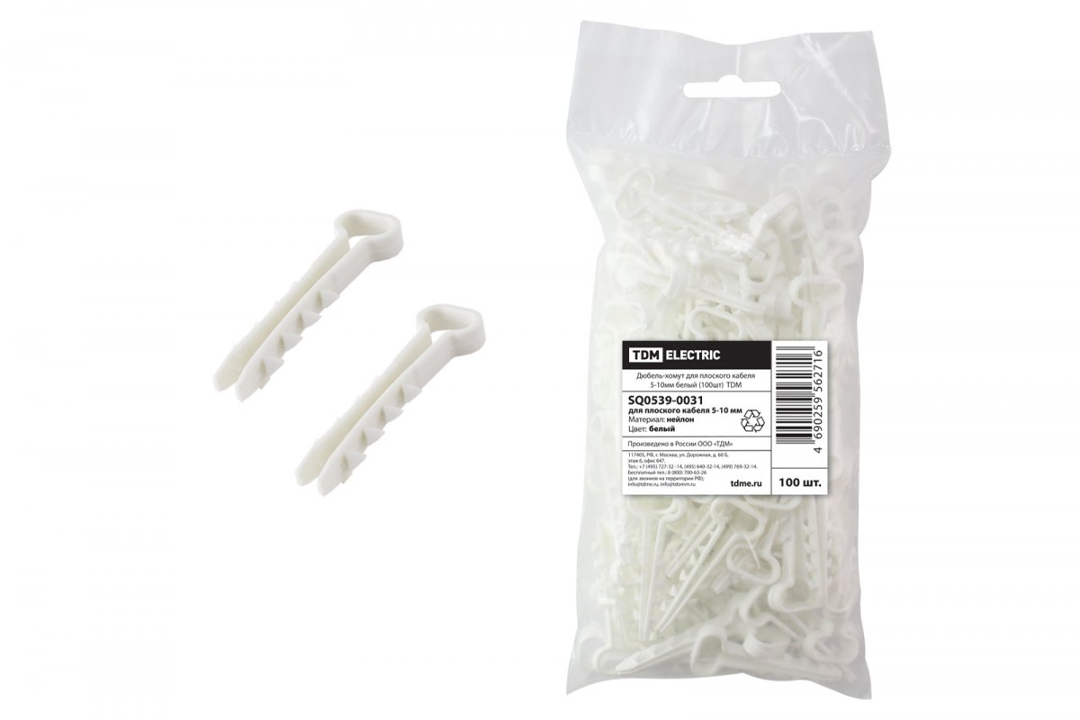 Дюбель-хомут для плоского кабеля 5-10мм белый (100шт) TDM (ЕС)