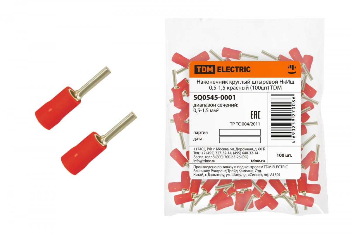 Наконечник круглый штыревой НкИш 0,5-1,5 красный (100шт) TDM