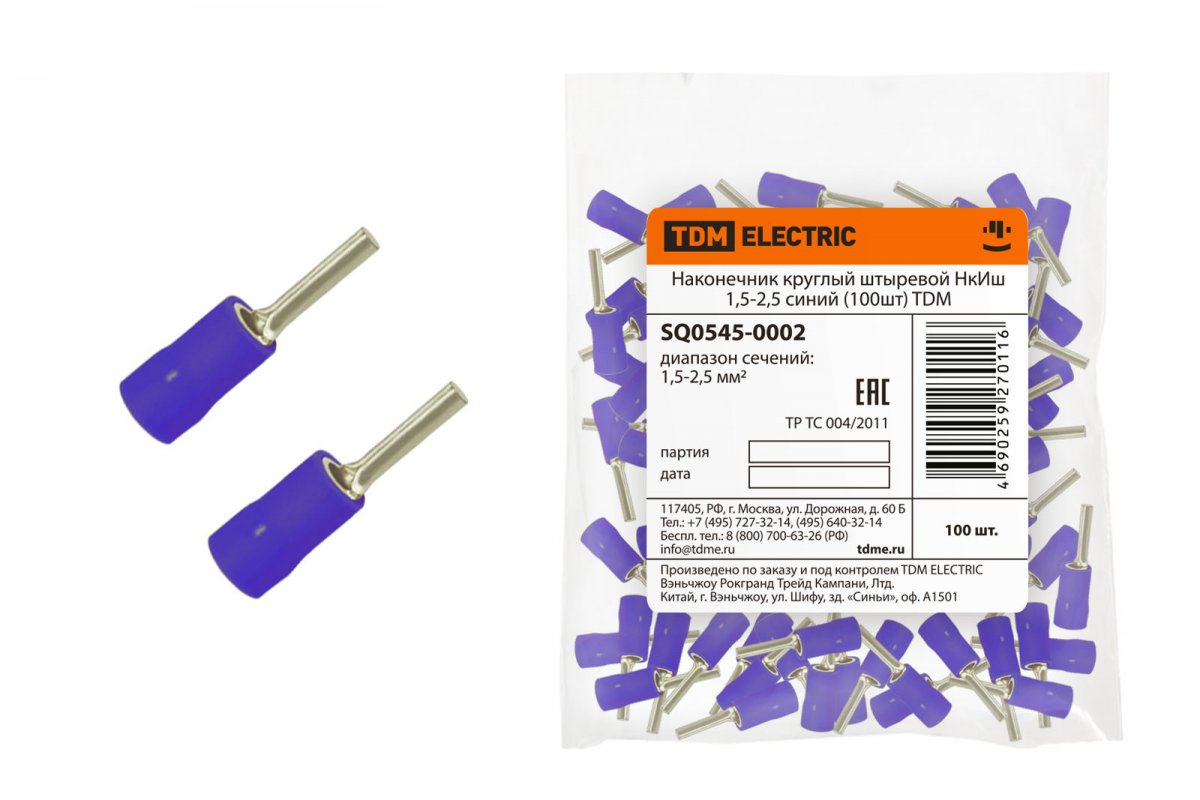 Наконечник круглый штыревой НкИш 1,5-2,5 синий (100шт) TDM