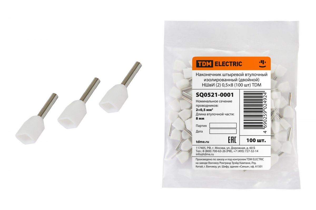 Наконечник штыревой втулочный изолированный (двойной) НШвИ (2) 0,5х8 оранжевый (100шт) TDM