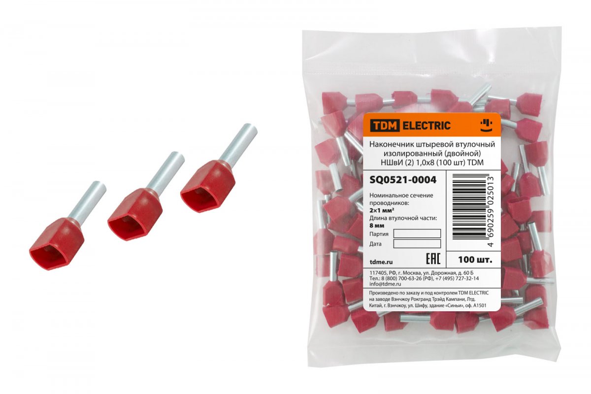 Наконечник штыревой втулочный изолированный (двойной) НШвИ (2) 1,0х8 светло-зеленый (100шт) TDM