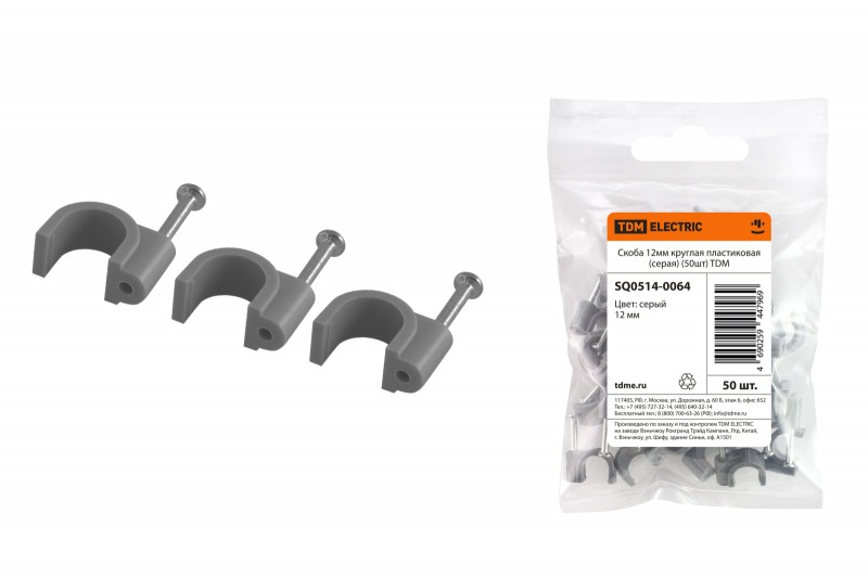 Скоба 12мм круглая пластиковая (серая) (50шт) TDM (ЕС)
