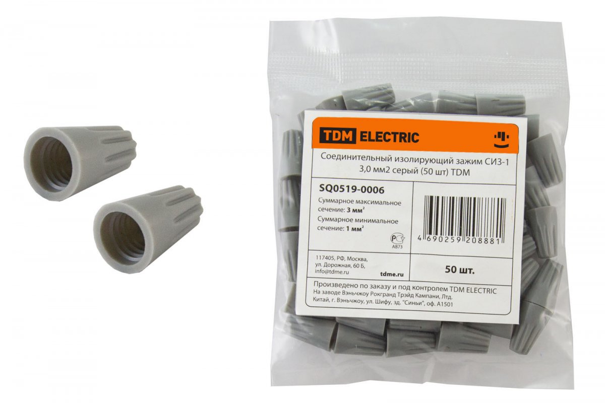Соединительный изолирующий зажим серии СИЗ-1 3,0мм2 серый (50 шт) TDM