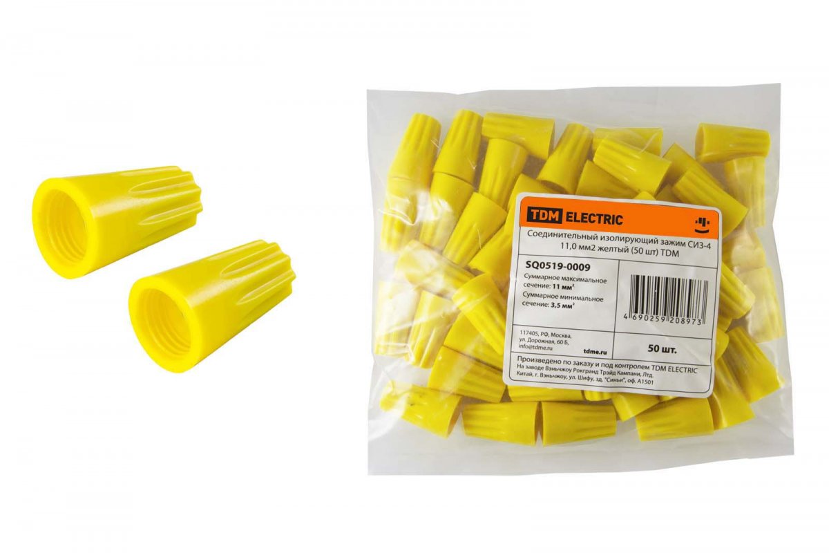 Соединительный изолирующий зажим серии СИЗ-4 11,0мм2 желтый (50 шт) TDM