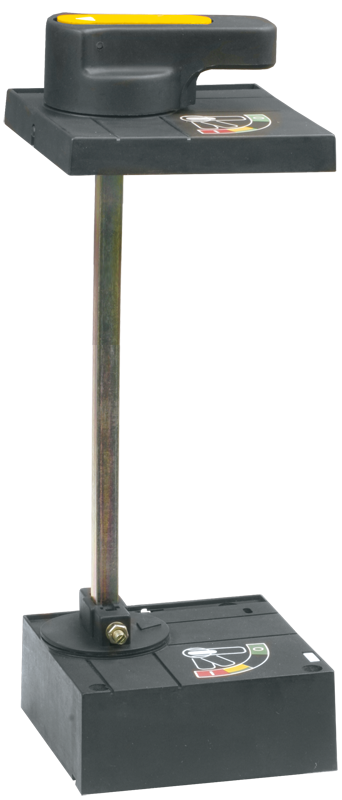 Ручной поворотный привод предназначен для преобразования вращательного движения в поступательное для управления автоматическим выключателем. Привод закрепляется на двери распределительного устройства для оперирования выключателем через дверь или непосредственно на выключателе.