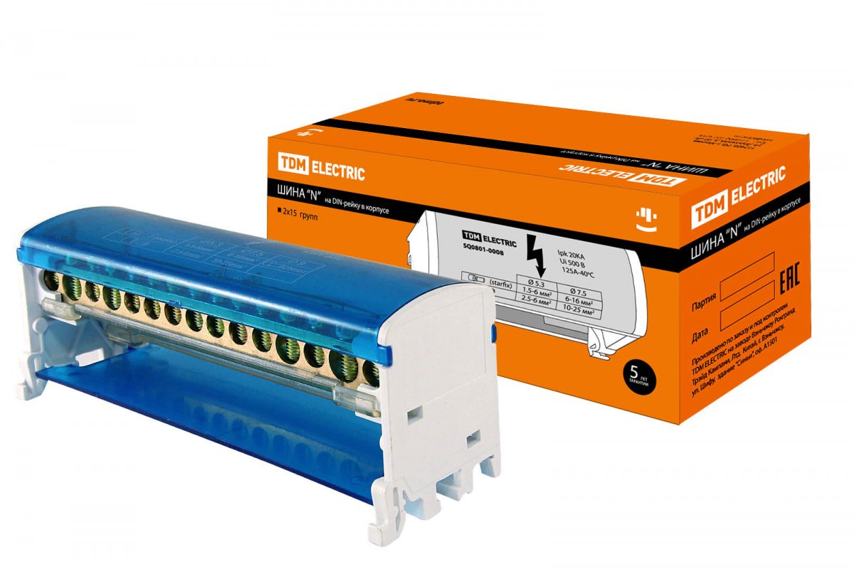 Шина "N" нулевая на DIN-рейку в корпусе 2х15 групп TDM