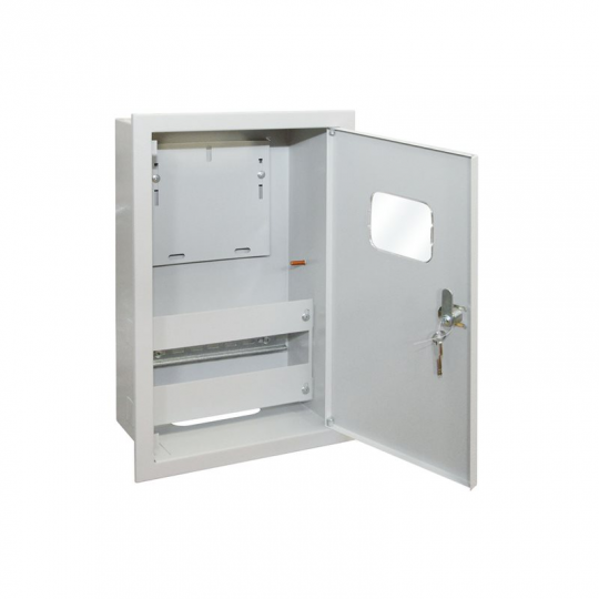 - DIN-рейка для установки модульного оборудования. Панель для установки счетчика Фальш-панель, исключающая доступ к токоведущим частям. Съемная дверца.