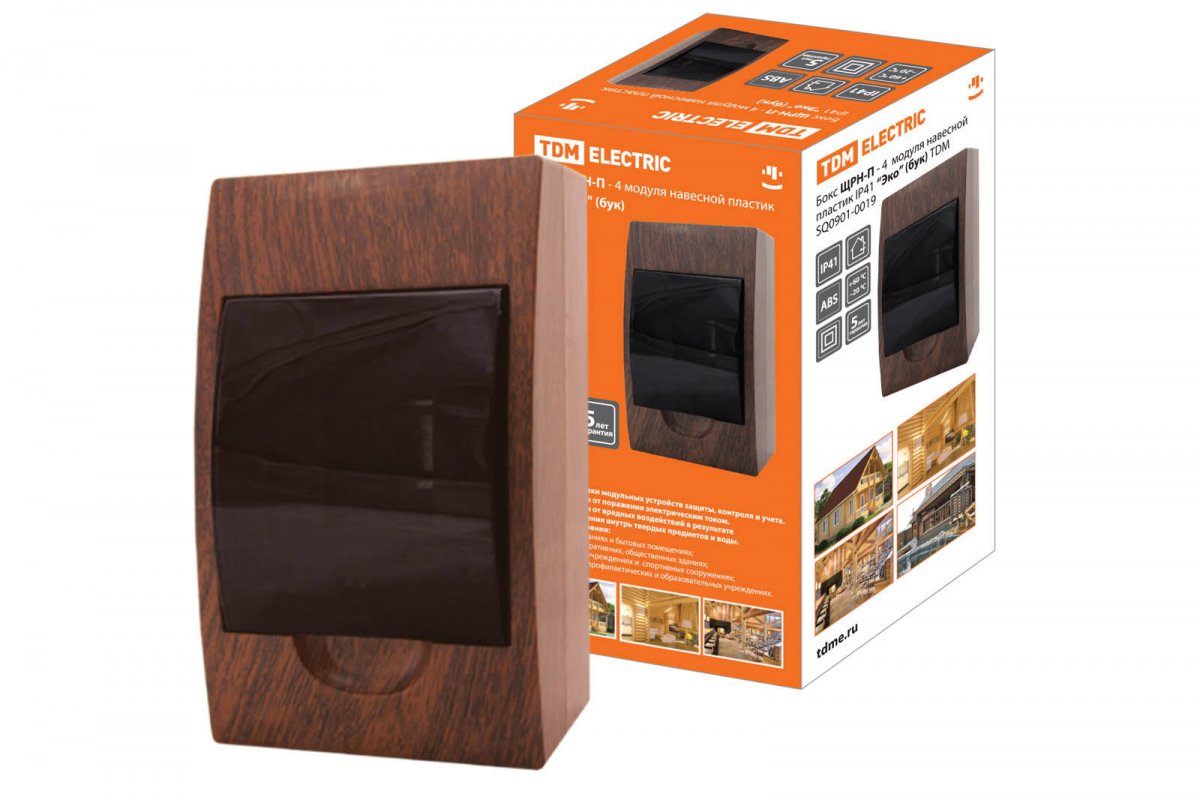 Бокс ЩРН-П-4 модулей навесной пластик IP41 "Эко" (бук) TDM