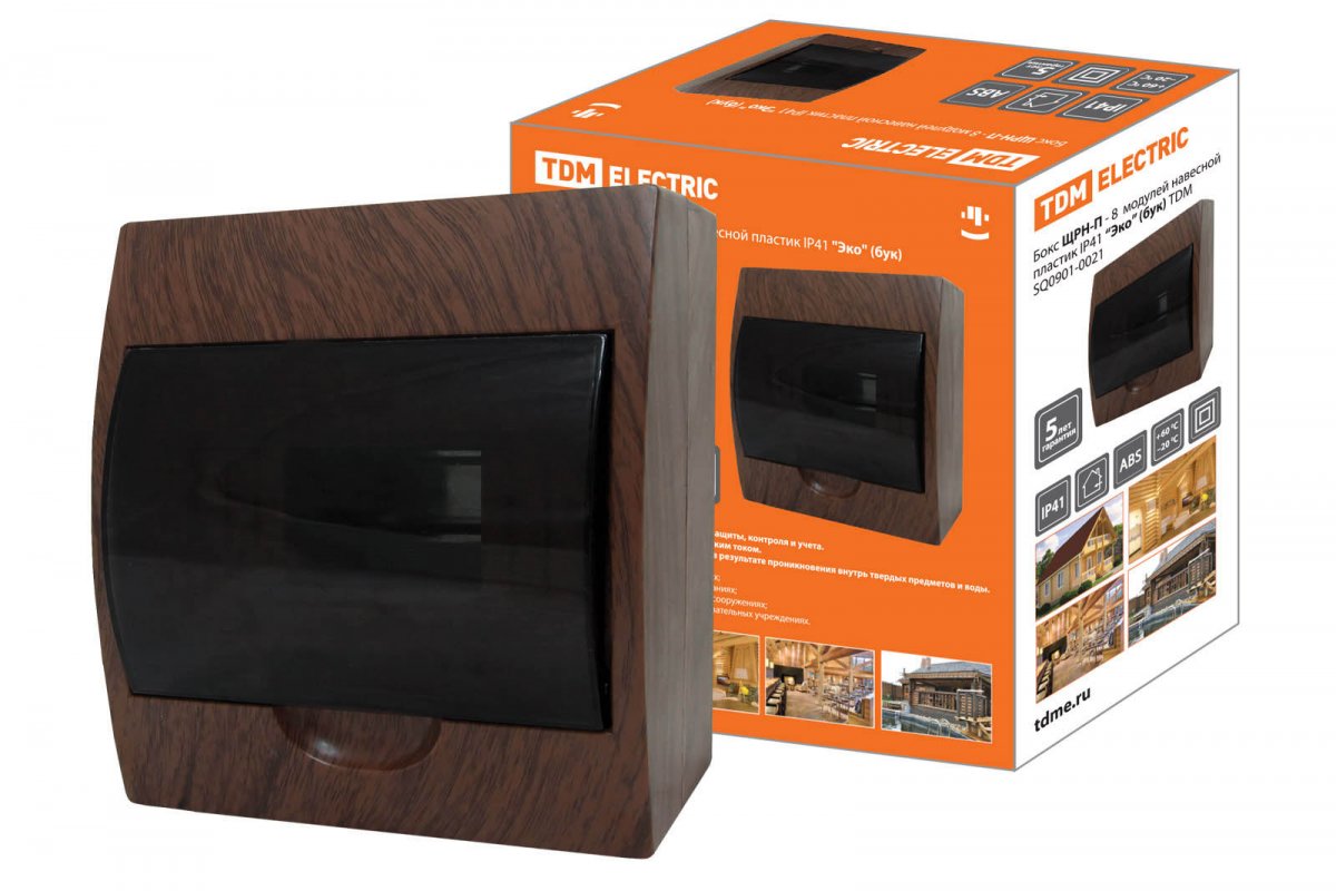 Бокс ЩРН-П-8 модулей навесной пластик IP41 "Эко" (бук) TDM