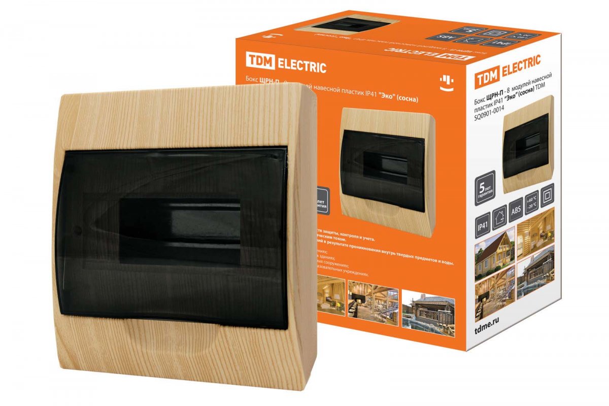 Бокс ЩРН-П-8 модулей навесной пластик IP41 "Эко" (сосна) TDM