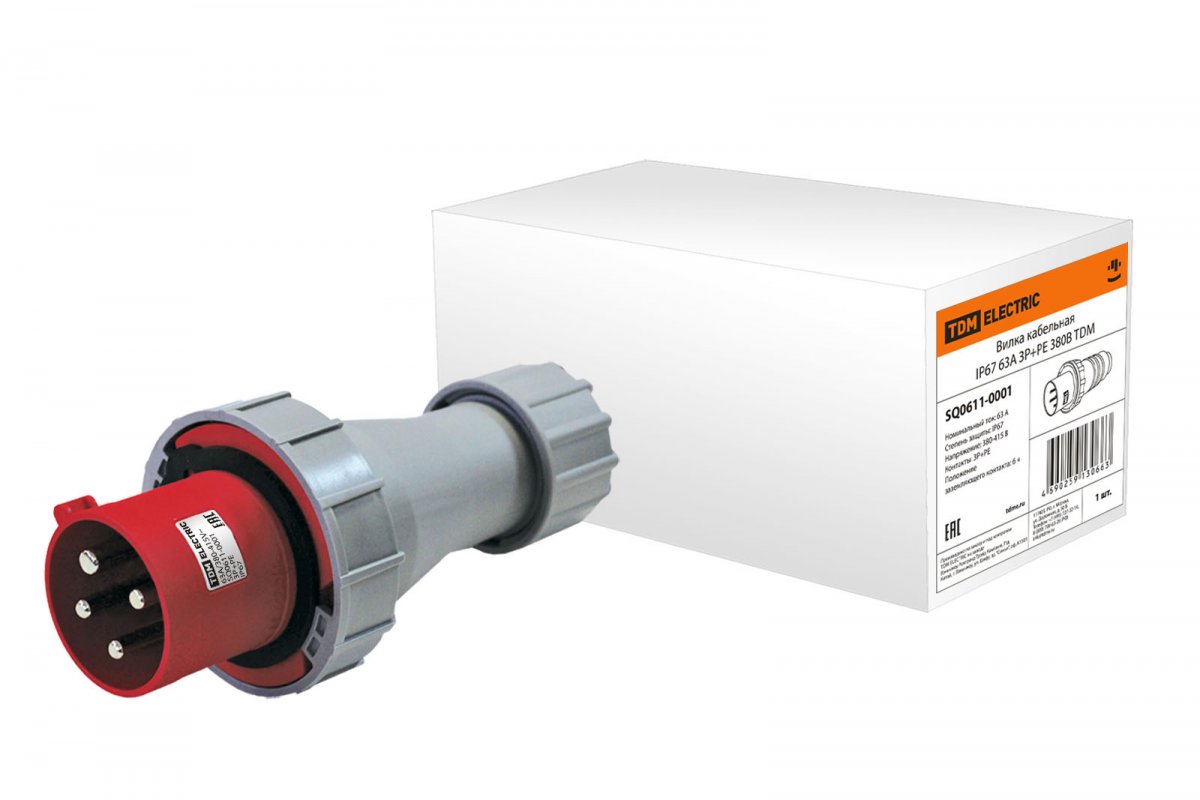 Вилка кабельная IP67 63А 3Р+РЕ 380В TDM