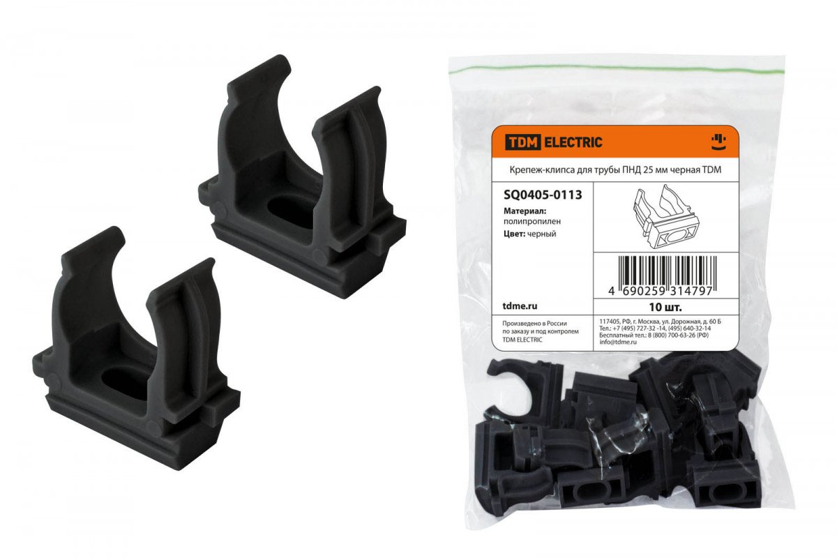 Крепеж-клипса для трубы ПНД 25 мм черная TDM