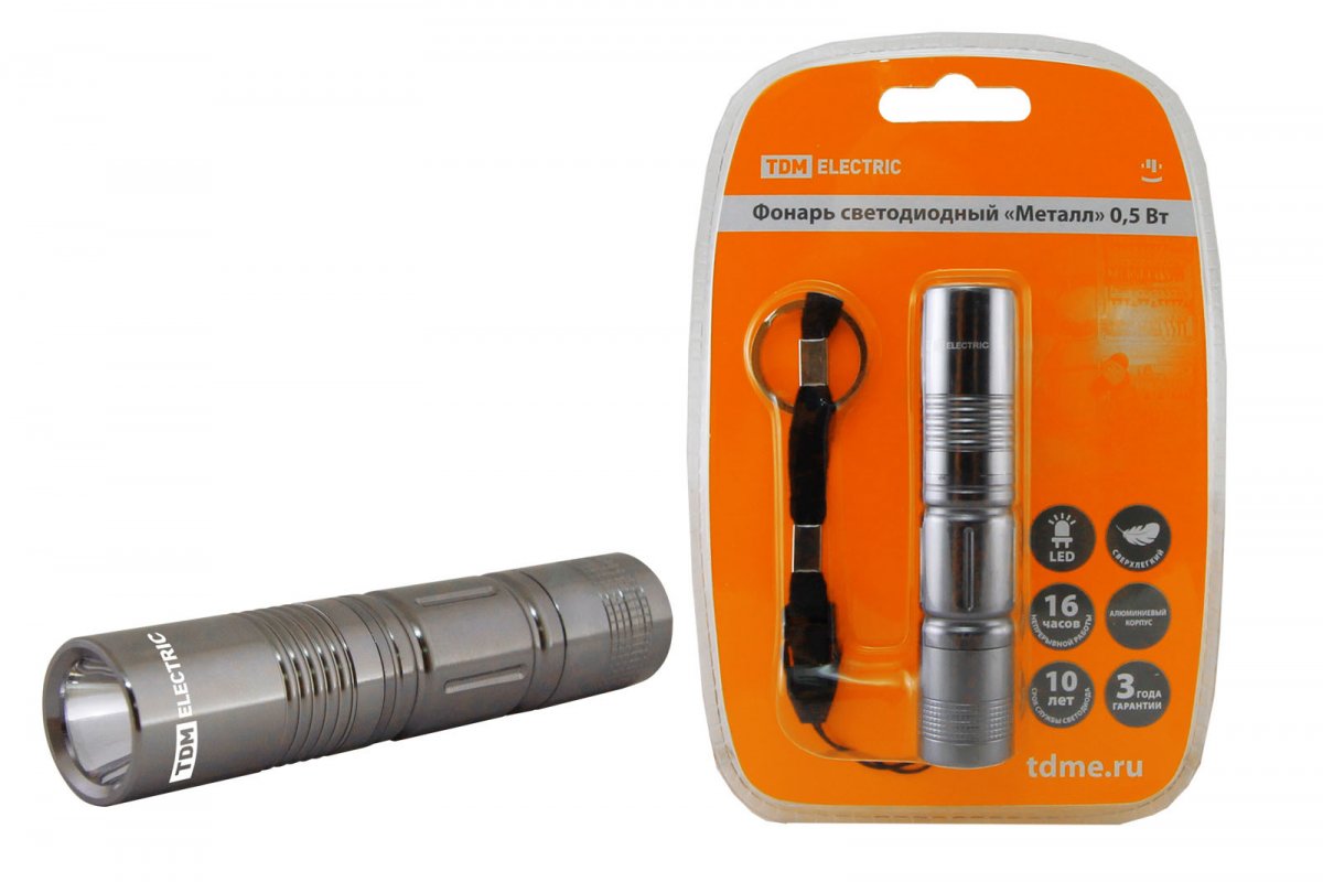 Фонарь светодиодный "Металл", 0,5Вт светодиод 30лм/Вт,батареи типа 1*АА (в комплект не входят) TDM