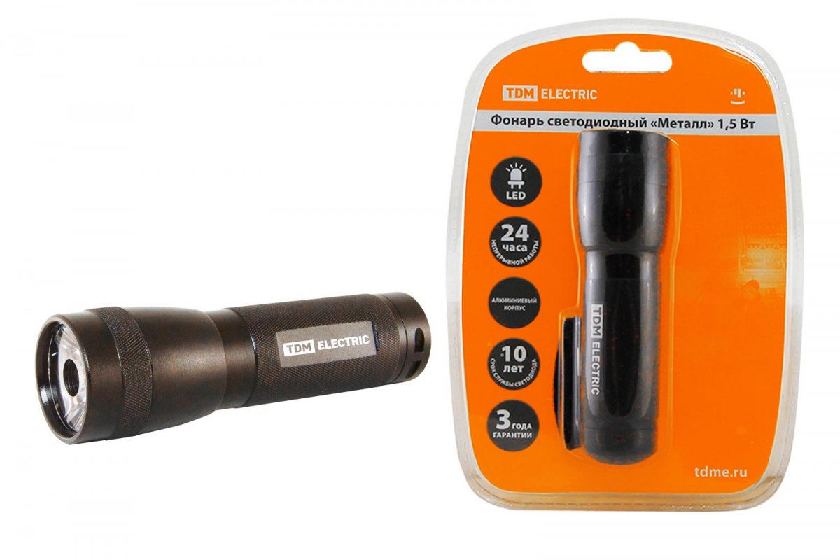 Фонарь светодиодный "Металл", 1,5В светодиод 80лм/Вт,батареи типа 3*ААА (в комплект не входят) TDM