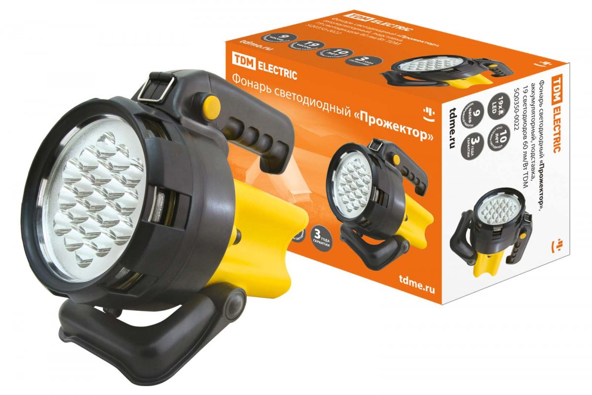 Фонарь светодиодный "Прожектор" аккумуляторный,подставка,19 светодиодов 60лм/Вт TDM