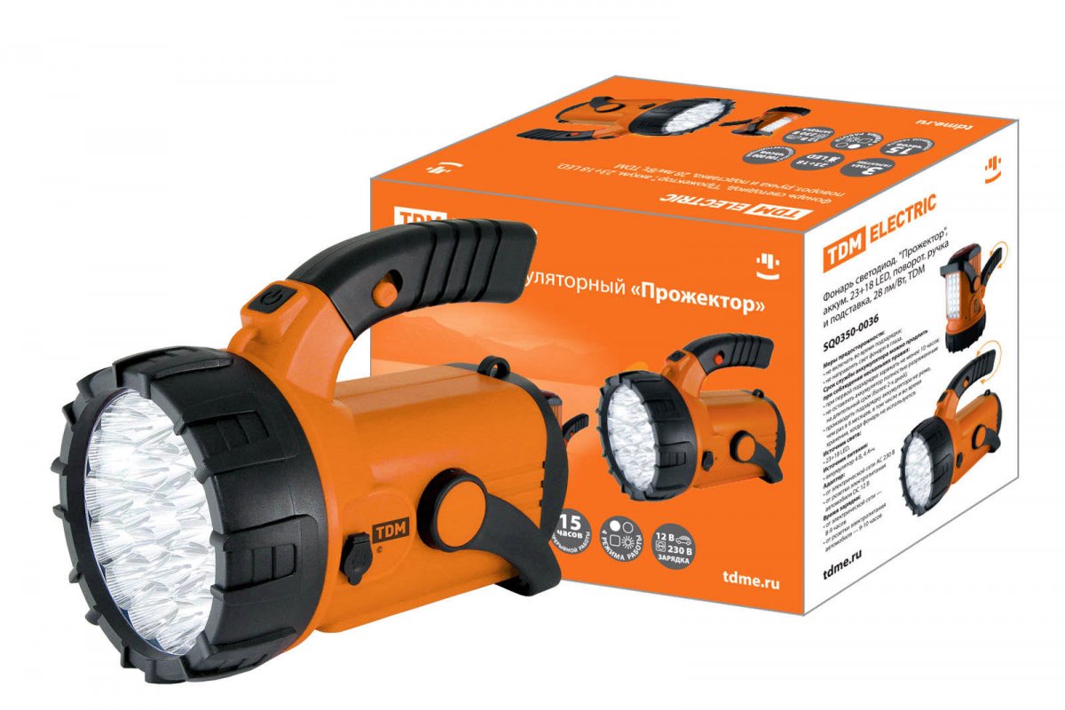Фонарь светодиодный "Прожектор", аккум. 23+18 LED, поворот. ручка и подставка, 28лм/Вт TDM