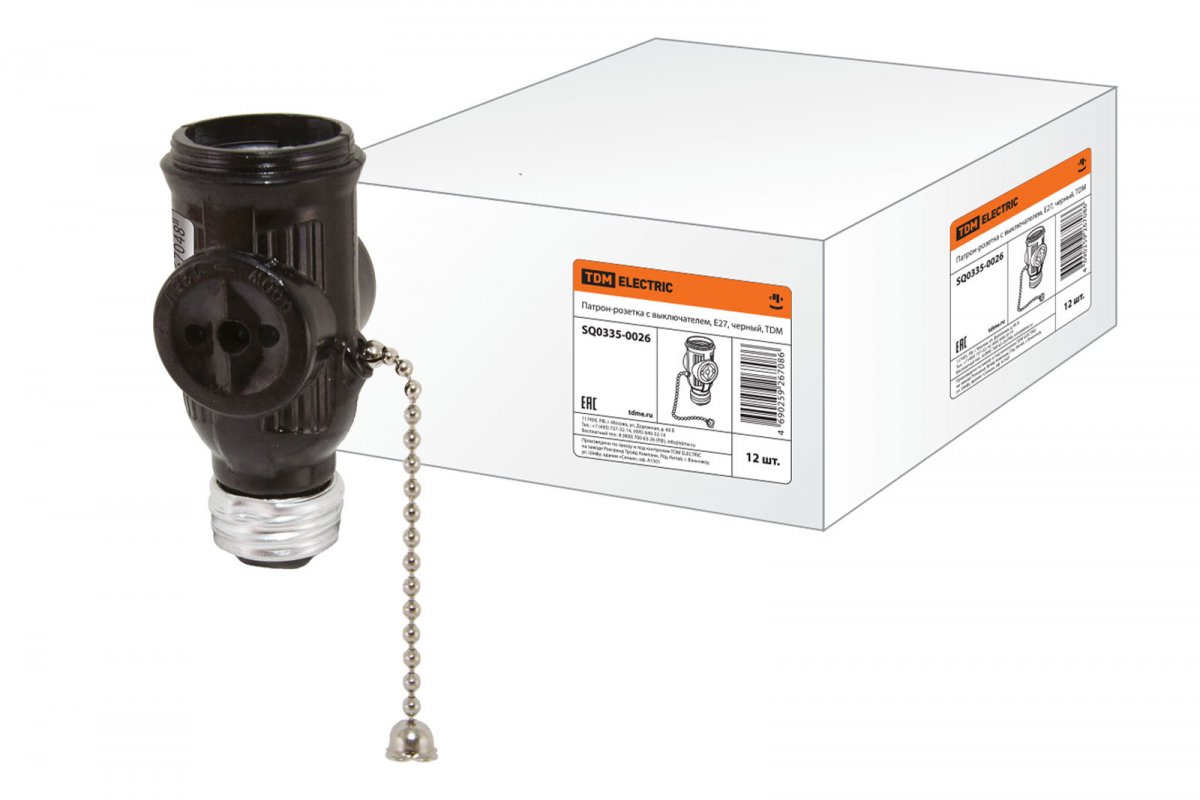 Патрон-розетка карболитовый с выключателем, Е27, черный, TDM
