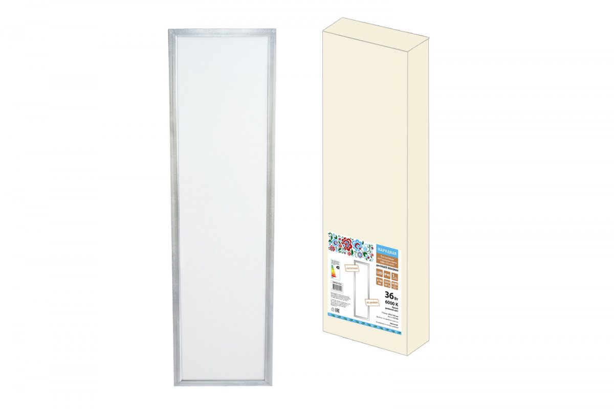 Ультратонкая светодиодная панель серии СВО 295 х1195, 36Вт, 6000К, хром, Народная (без драйвера)