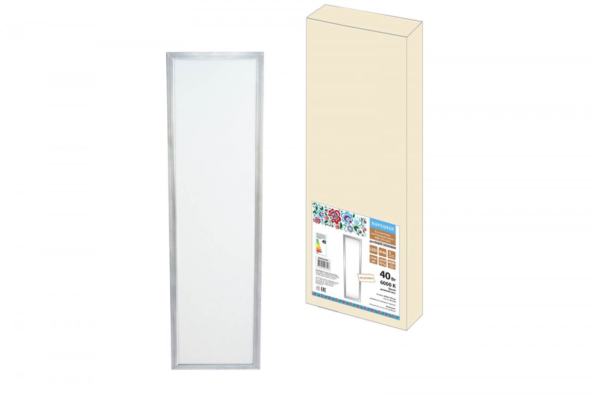 Ультратонкая светодиодная панель серии СВО 295 х1195, 40 Вт, 6000 К, хром, Народная (без драйвера)