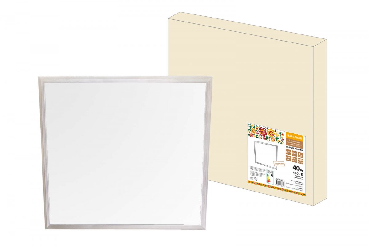 Ультратонкая светодиодная панель серии СВО 595х595, 40 Вт, 4000 К, хром, Народная ( без драйвера)