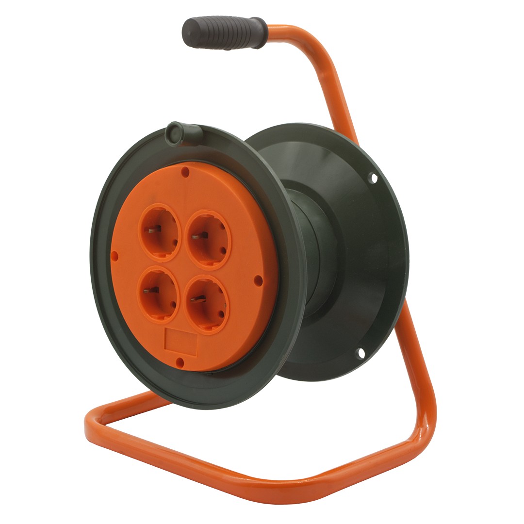Вид: пластиковая катушка, 4 розетки с заземлением, металлическая тренога